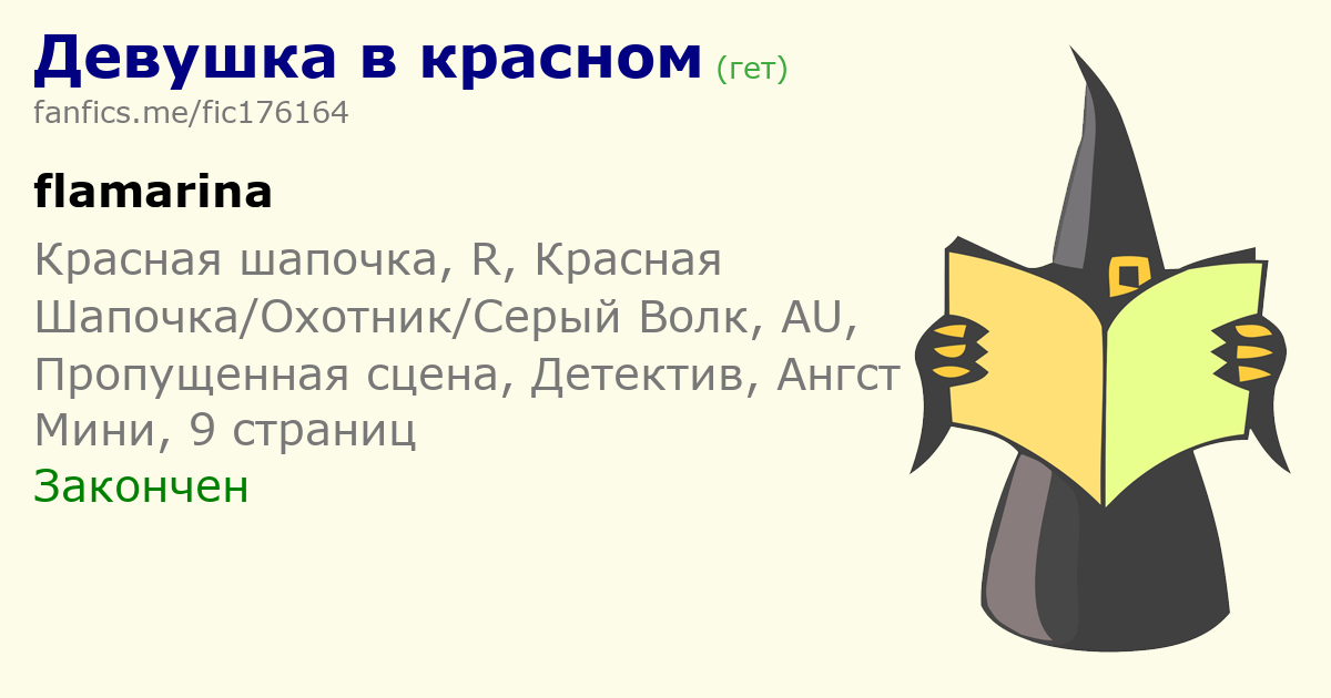 | Интересная АУ-шка, очень увлекательно ) И Красная Шапочка до чего же хороша, такая фам фаталь ) | |
